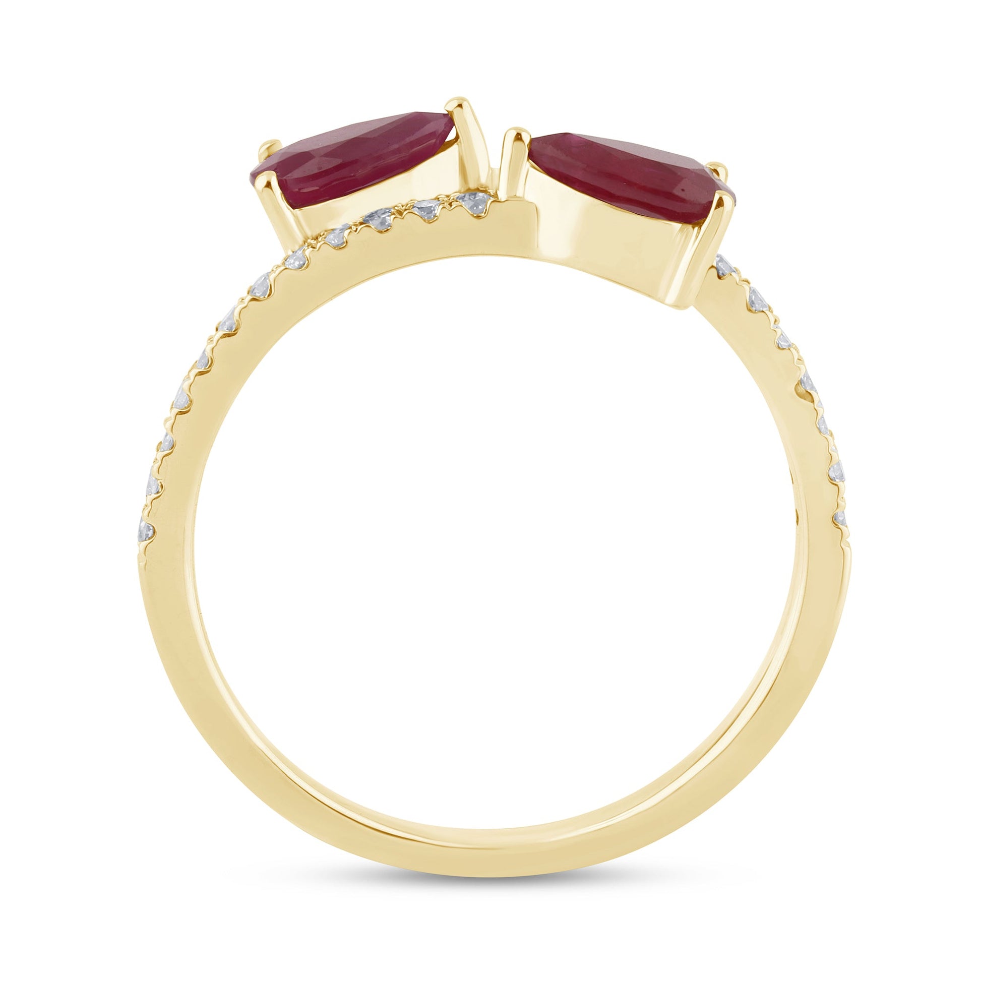 Muse Jewelry 1.02ct G SI 14K Yellow Gold Diamond & Pear Shape Ruby Gemstones Band Ring Size 6.5