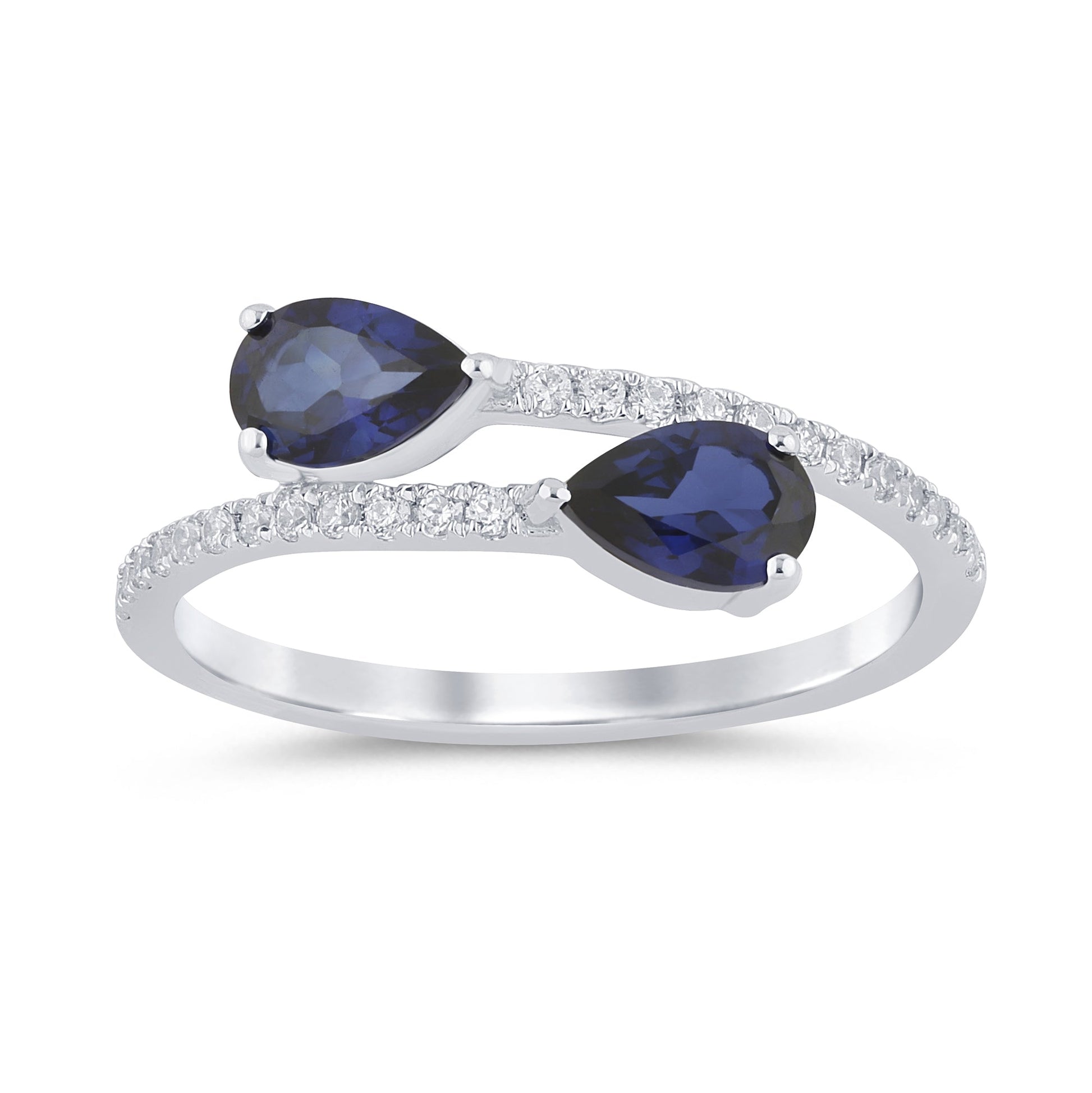 Muse Jewelry 1.11ct G SI 14K White Gold Diamond & Pear Shape Blue Sapphire Gemstones Band Ring Size 6.5