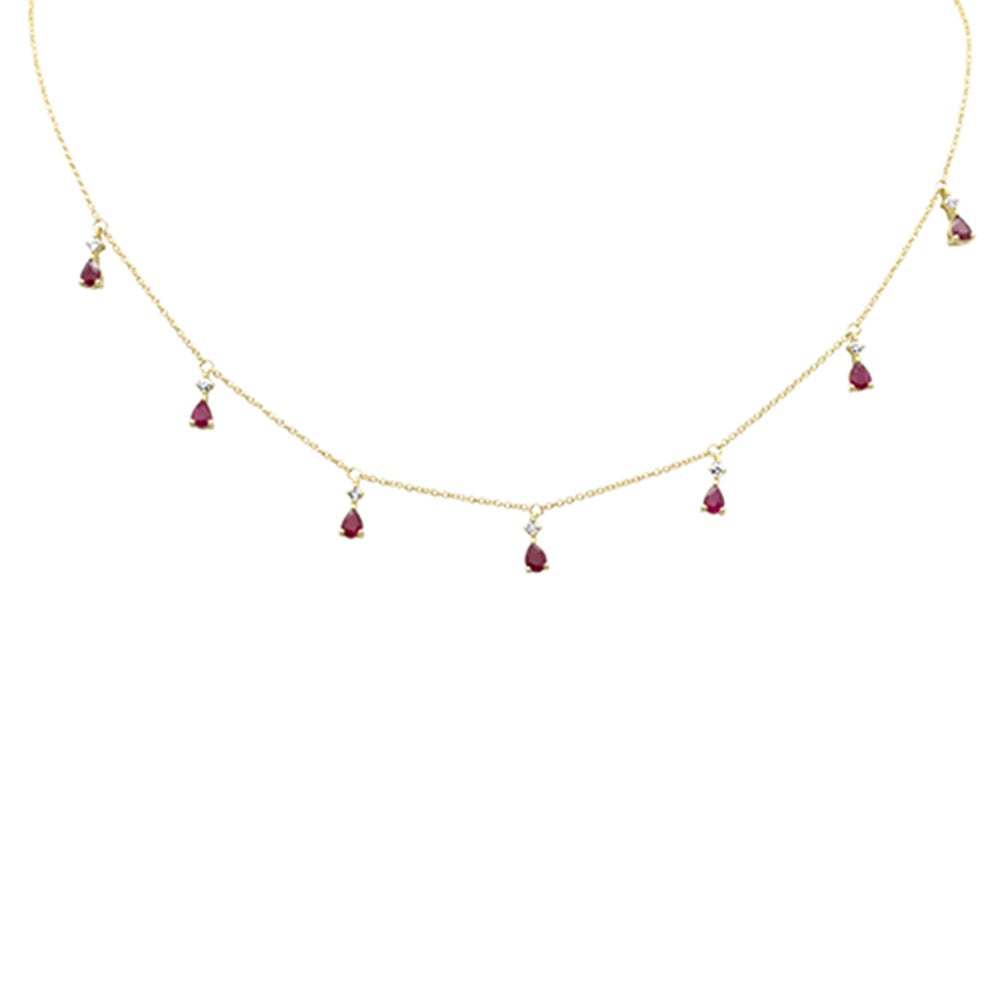 Muse Jewelry 1.26ct G SI 14K Yellow Gold Diamond & Ruby Gemstones Pendant Necklace 16+2" Ext Long