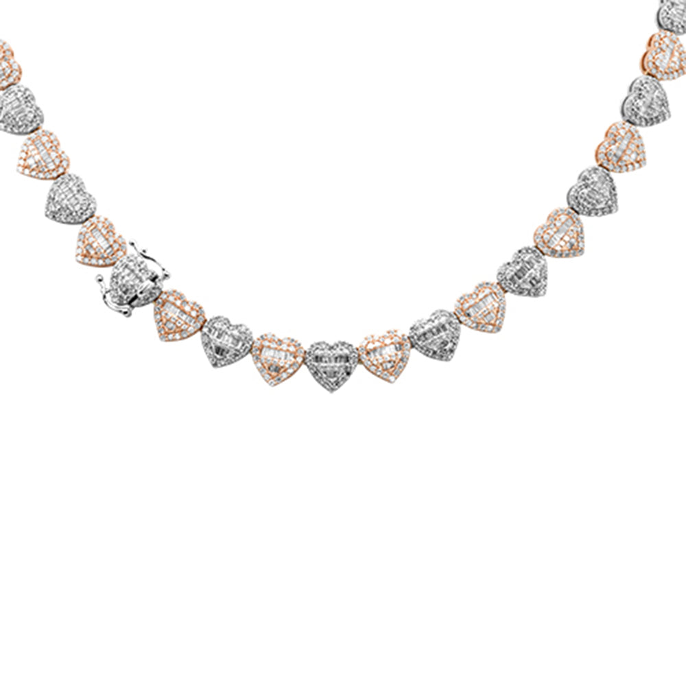 Muse Jewelry 11.48ct G SI 14K Two Tone Gold Diamond Round & Baguette Heart Tennis Necklace 20" Long