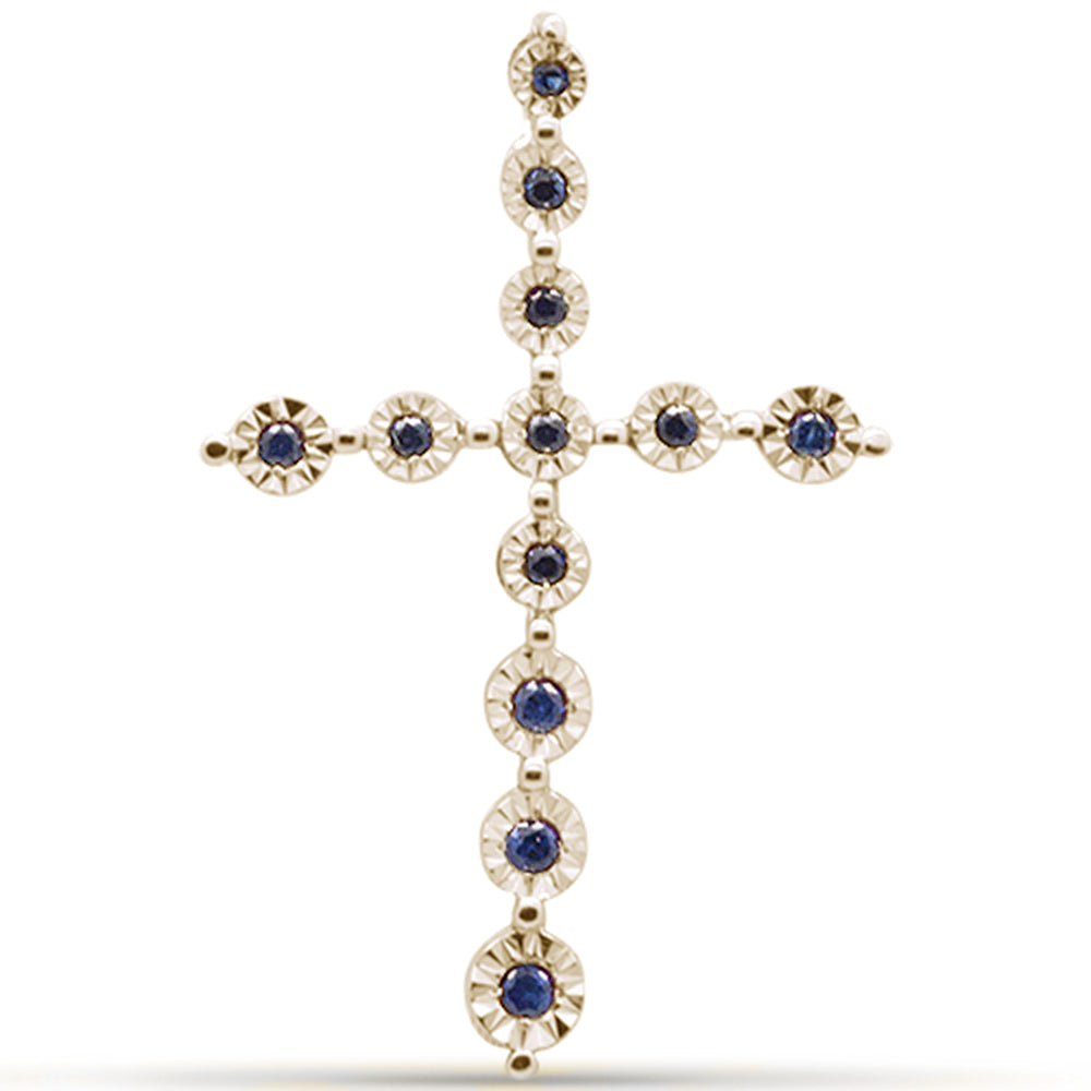 Muse Jewelry .11ct G SI 14K Yellow Gold Blue Sapphire Gemstone Cross Pendant