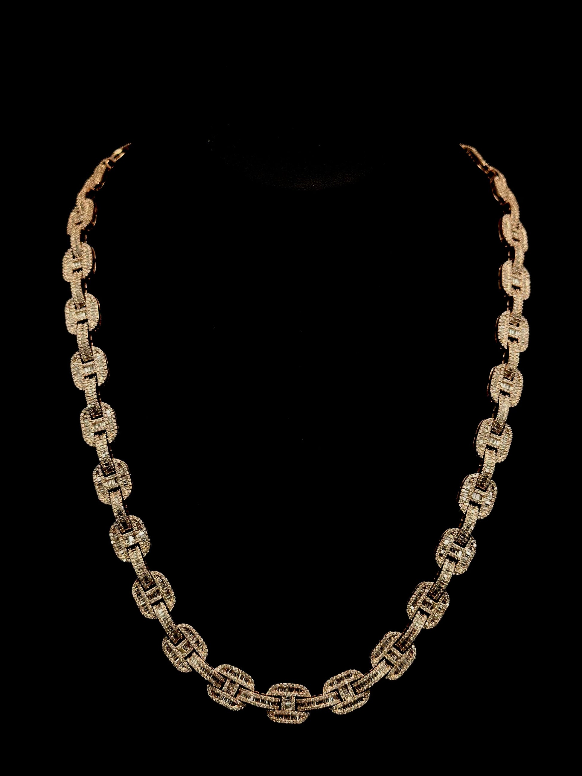 Muse Jewelry 11mm 17.95ct G SI 14K Rose Gold Iced Out Diamond Round & Baguette Necklace 22"