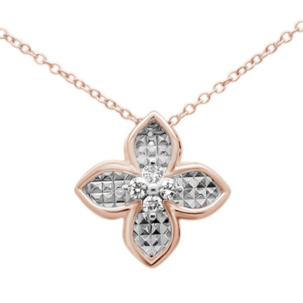 Muse Jewelry .12ct G SI 10K Rose Gold Diamond Flower Pendant Necklace 18"