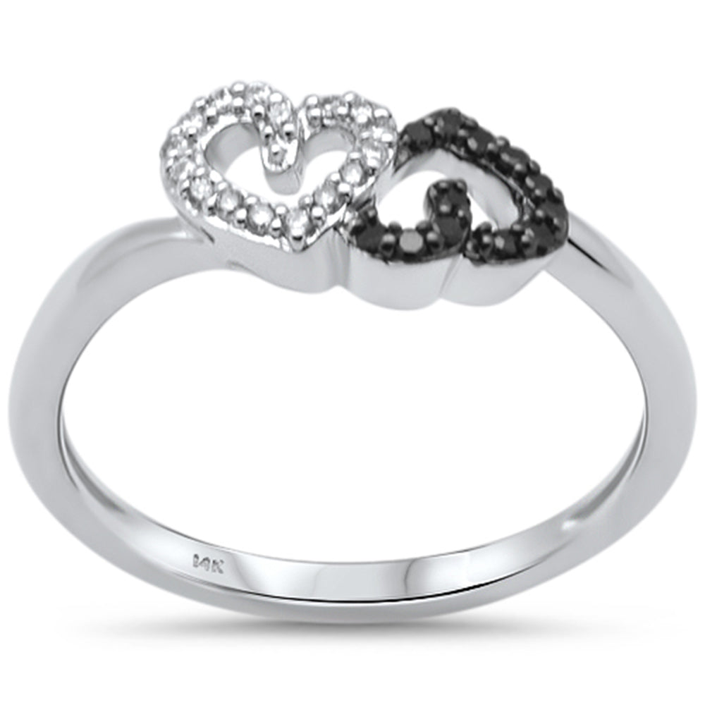 Muse Jewelry .13ct G SI 14K White Gold White & Black Diamond Heart Band Ring Size 6.5