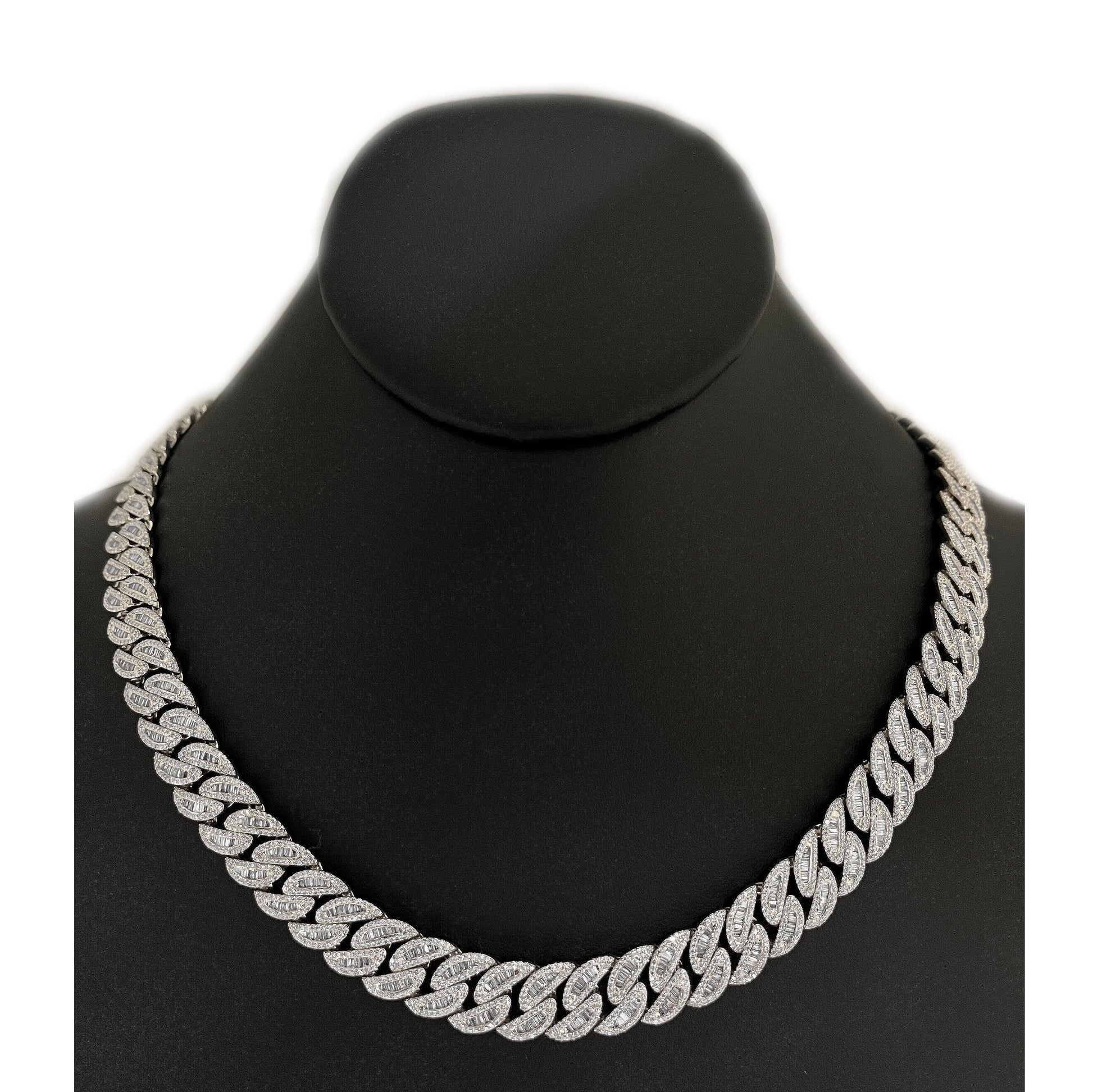 Muse Jewelry 13mm 19.48ct G SI 14K White Gold Baguette & Round Diamond Cuban Necklace 20"