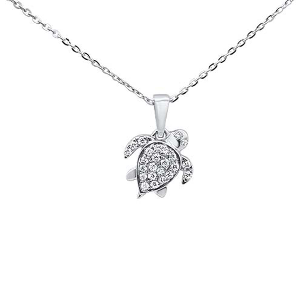 Muse Jewelry .14ct 14kt White Gold Turtle Love Heart Diamond Pendant Necklace 16"+2" Ext
