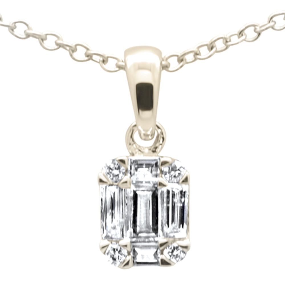 Muse Jewelry .14ct G SI 14K Yellow Gold Diamond Round & Baguette Pendant Necklace 18" Long