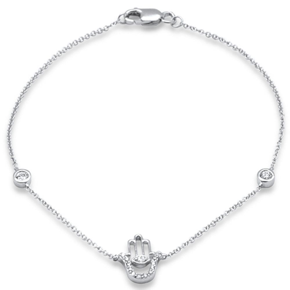 Muse Jewelry .16ct G SI 14K White Gold Diamond Hamsa Bracelet 7" Long