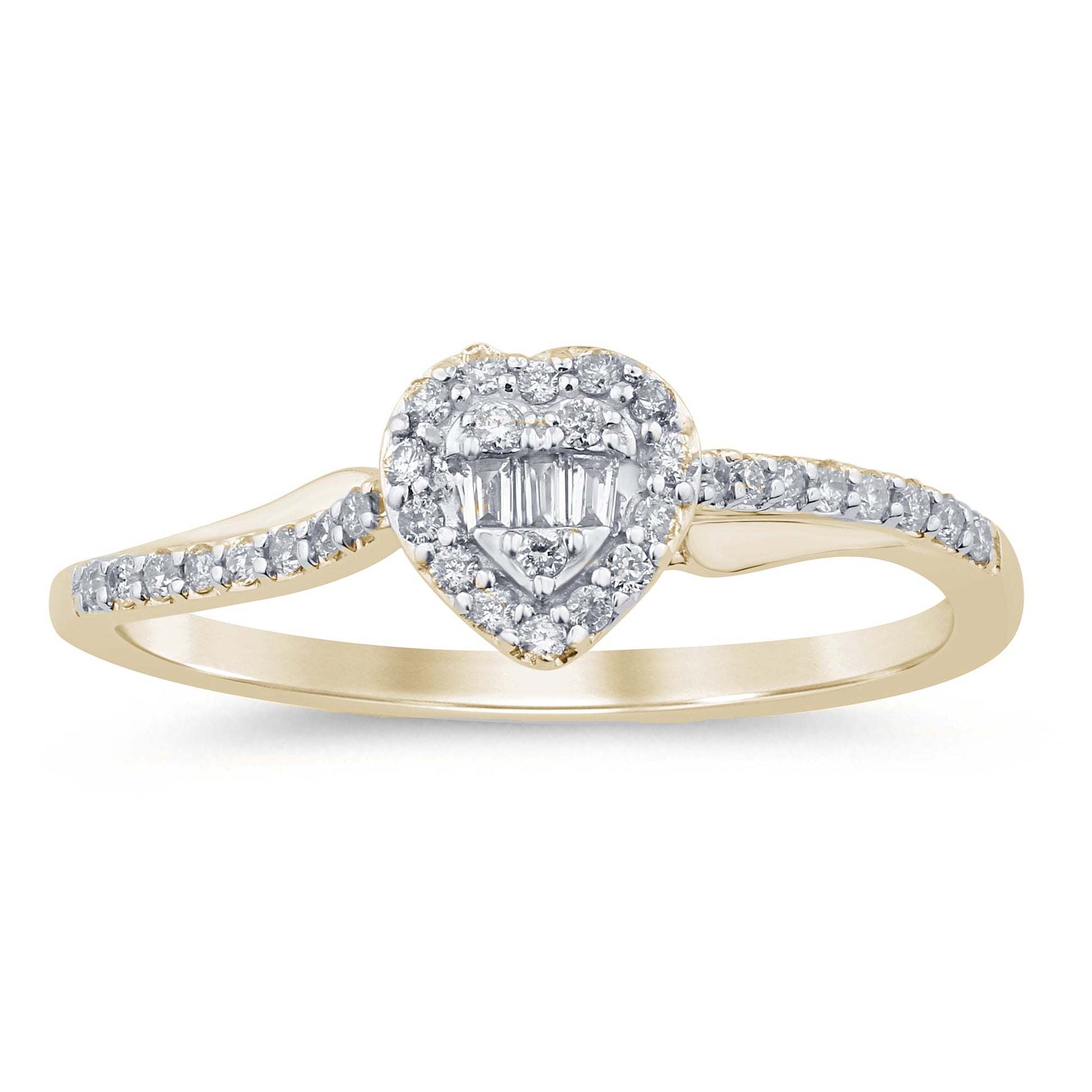 Muse Jewelry .16ct G SI 14K Yellow Gold Round & Baguette Diamond Engagement Ring Size 6.5