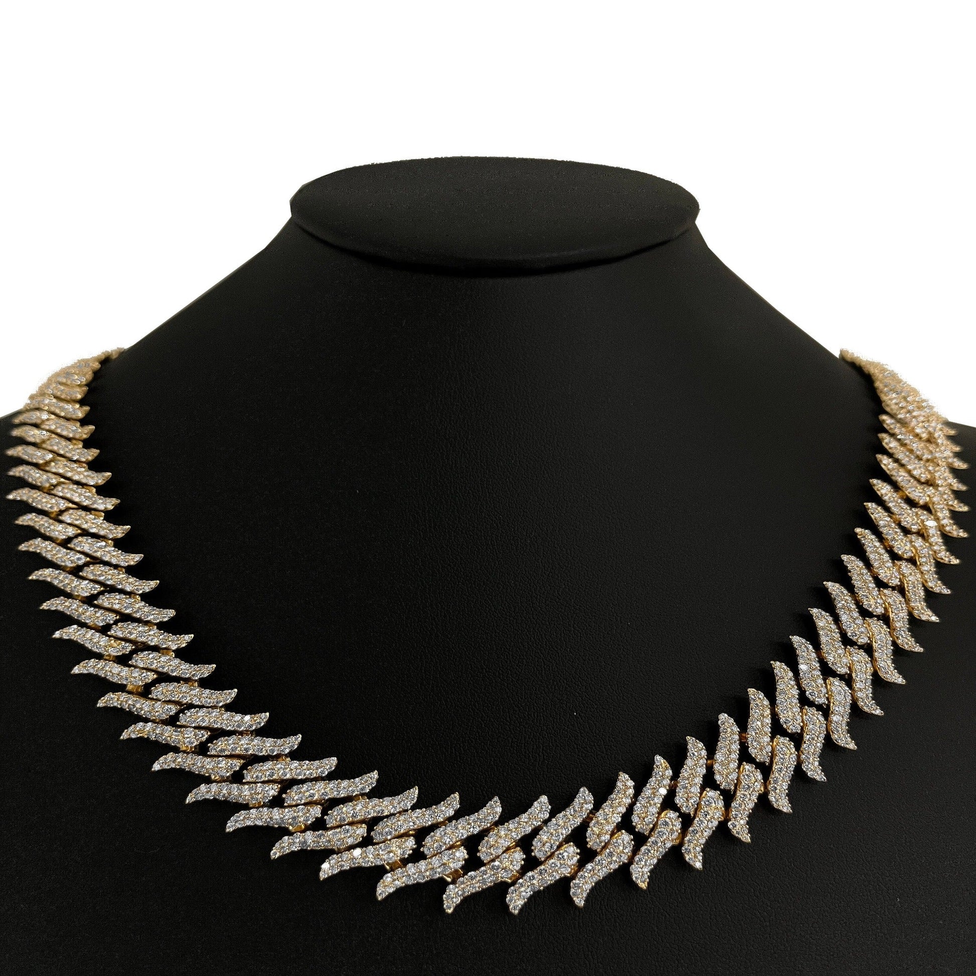 Muse Jewelry 18mm 32.85ct G SI 14K Yellow Gold Spiked Round Diamond Cuban Necklace 22"
