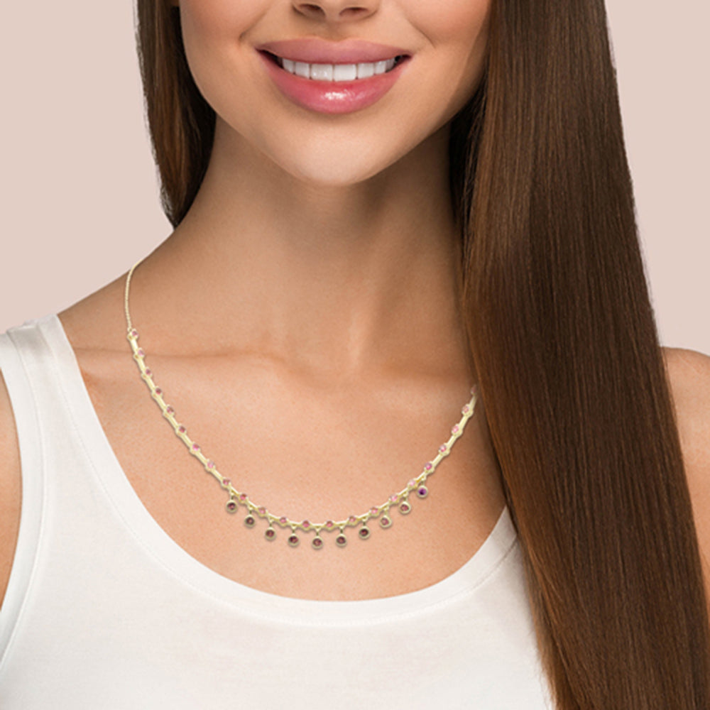 Muse Jewelry 2.21ct G SI 14K Yellow Gold Pink Tourmaline Dangling Pendant Necklace 16+2" Ext
