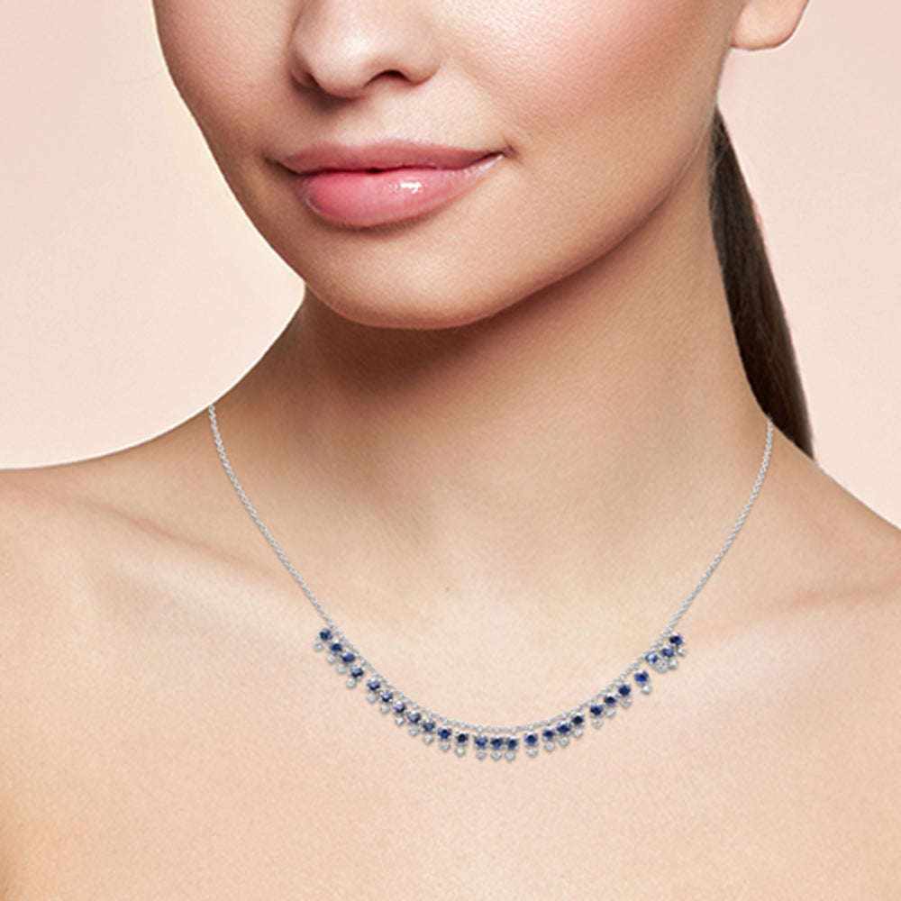 Muse Jewelry 2.25ct G SI 14K White Gold Diamond & Blue Sapphire Gemstone Dangling Pendant Necklace 16" + 2" Ext