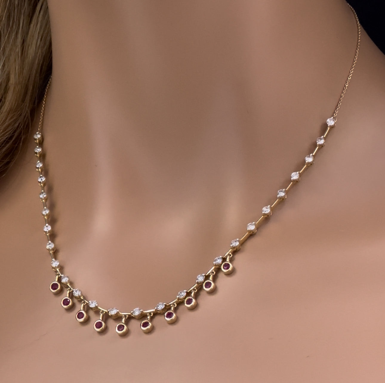 Muse Jewelry 2.37ct .64ct G SI 14K Yellow Gold Diamond & Ruby Gemstone Dangling Pendant Necklace 16" + 2" EXT