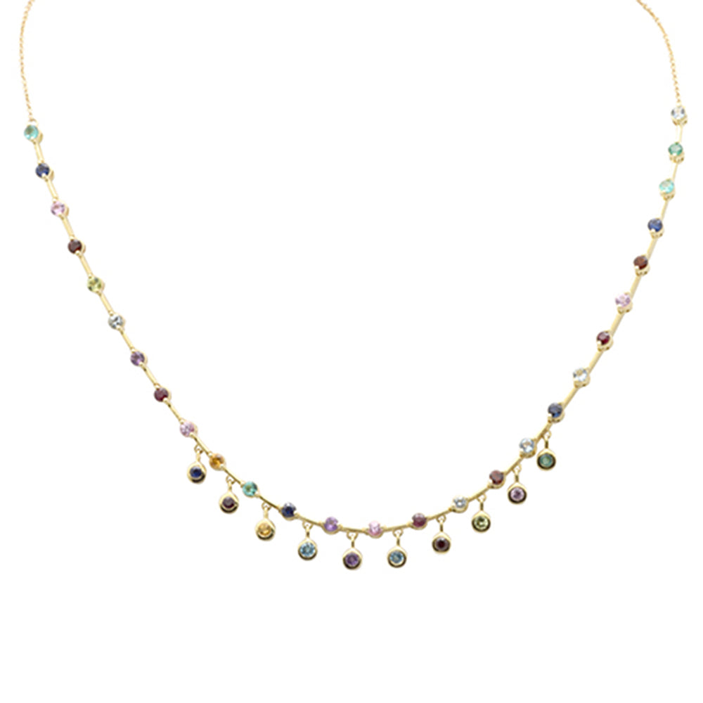 Muse Jewelry 2.48ct G SI 14K Yellow Gold Multi Color Gemstone Necklace 16 + 2" Ext