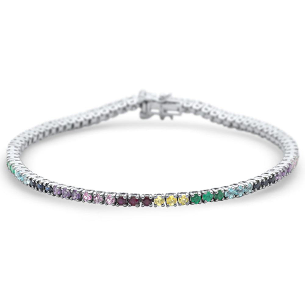 Muse Jewelry 2.85ct G SI 14K White Gold Multi Color Gemstone Tennis Bracelet 7"Long