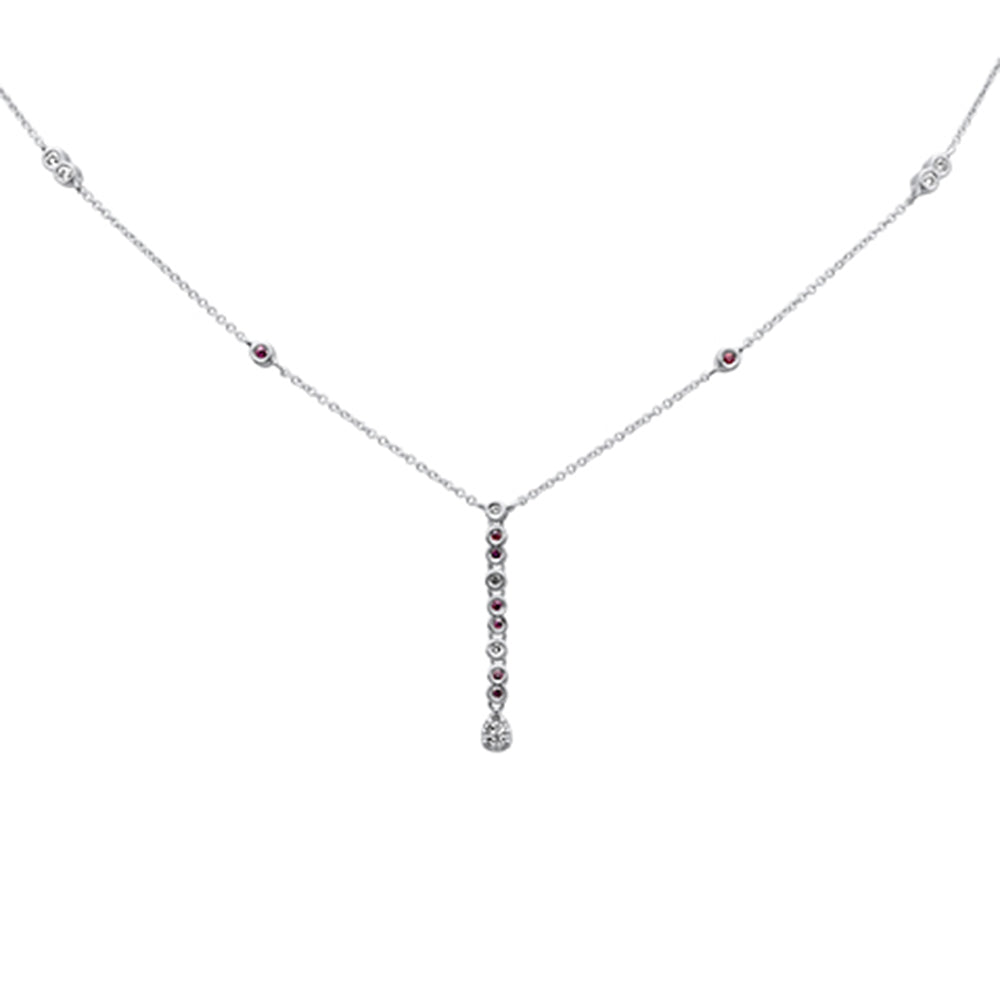 Muse Jewelry .26ct G SI 14K White Gold Diamond & Ruby Gemstone Pendant Necklace 16+2" Long Chain