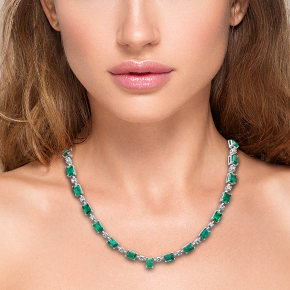 Muse Jewelry 27.75ct G SI 14K White Gold Diamond & Natural Emerald Gemstones Pendant Necklace 16+2" Ext. Long