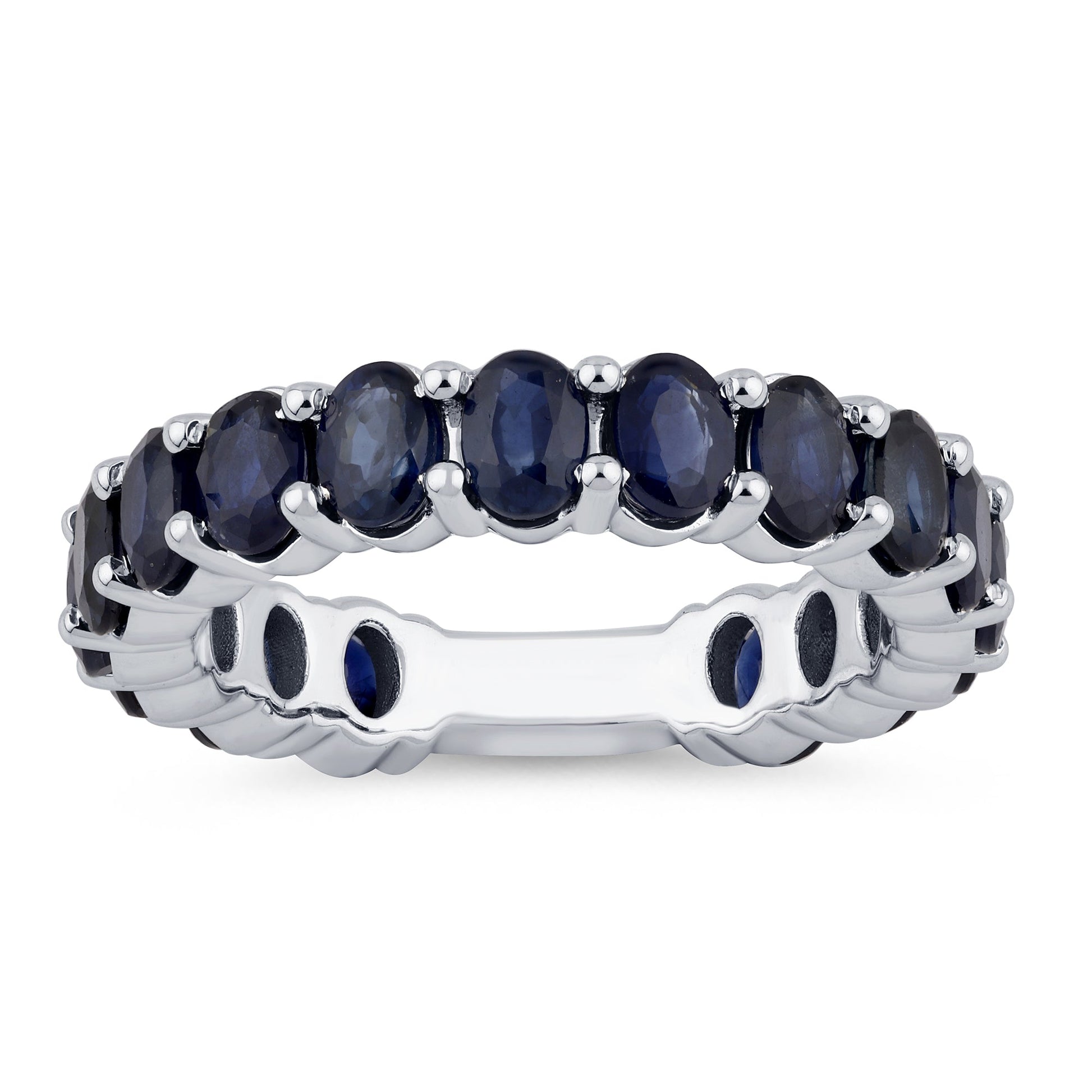 Muse Jewelry 3.76ct G SI 14K White Gold Blue Sapphire Gemstone Band Ring Size 6.5