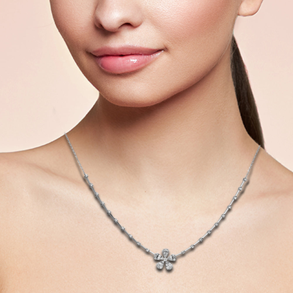 Muse Jewelry .32ct G SI 14K White Gold Diamond Flower Pendant Necklace 18" Long