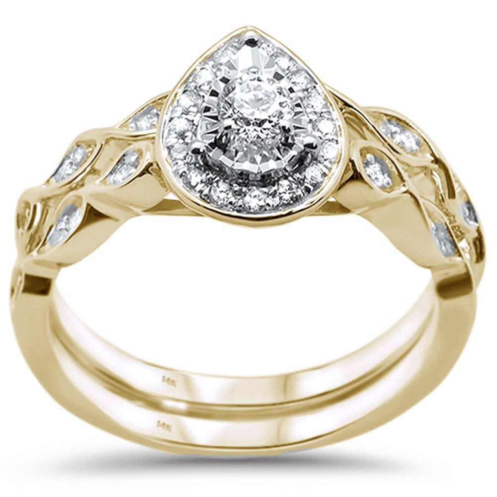 Muse Jewelry .33ct 14KT Yellow Gold Diamond Pear Shape Bridal Engagement Set Size 6.5