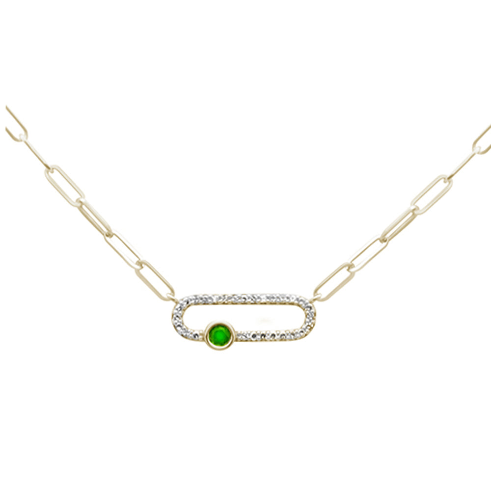 Muse Jewelry .37ct G SI 14k Yellow Gold Diamond & Emerald Gemstones Paper clip Pendant Necklace 14+2" Long Chain