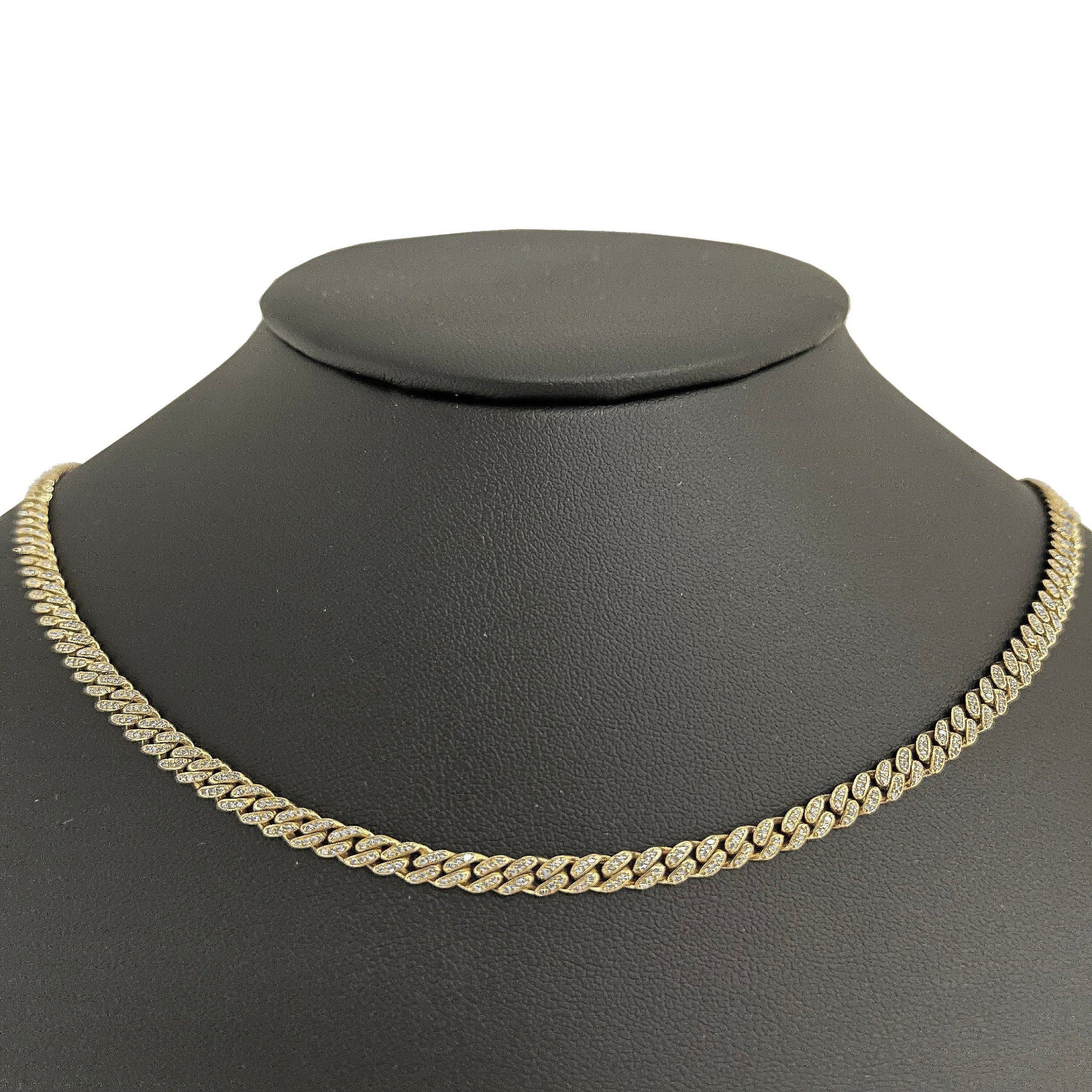 Muse Jewelry 4mm 1.75ct 14k Yellow Gold Diamond Round Cuban Necklace 18"