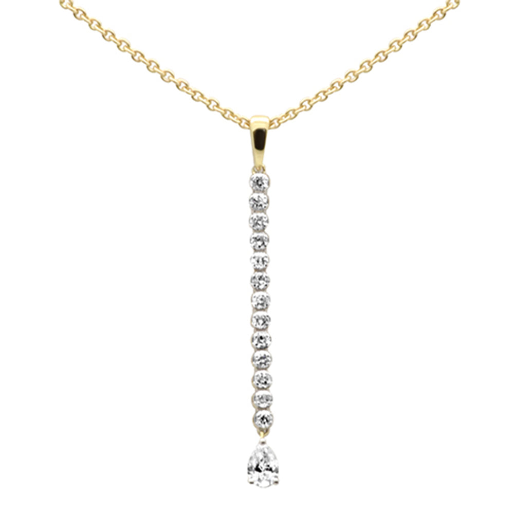 Muse Jewelry .51ct G SI 14K Yellow Gold Diamond Pear Shape Drop Pendant Necklace 14+2" Ext Long Chain