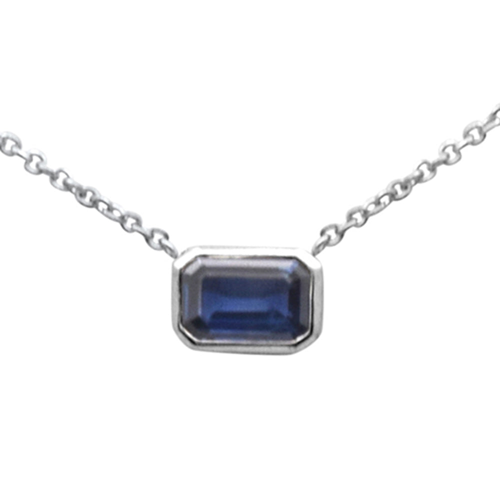 Muse Jewelry .63ct G SI 14K White Gold Blue Sapphire Gemstone Pendant Necklace 16+2" Ext Long Chain