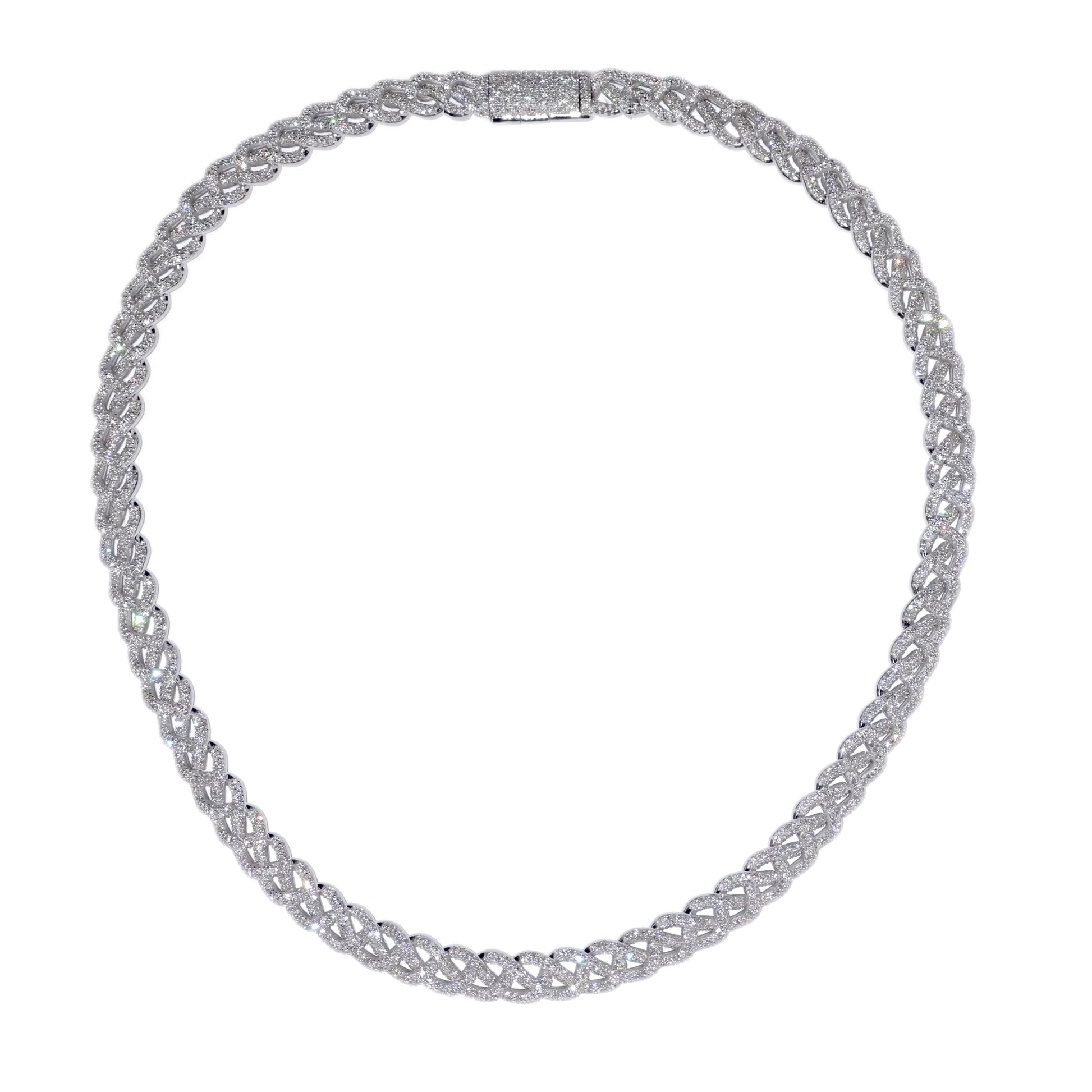Muse Jewelry 7mm 8.36ct G SI 14K White Gold Diamond Round Cuban Style Choker Necklace 16" Long