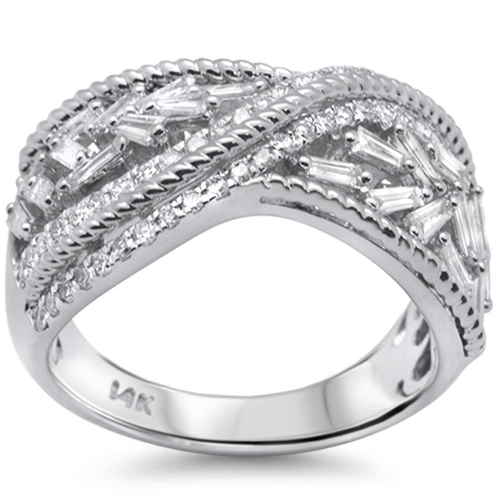 Muse Jewelry .95ct G SI 14K White Gold Round & Baguette Diamond Criss Cross Women's Ring Size 7