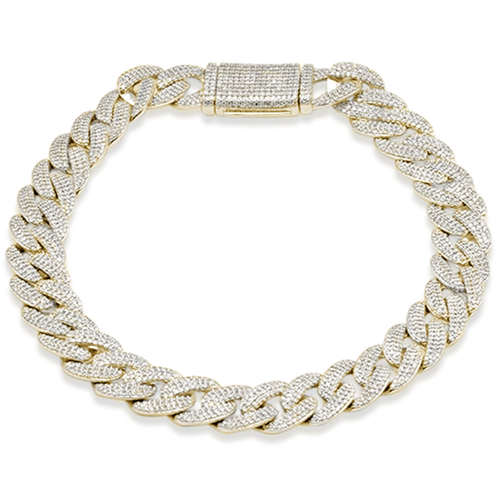Muse Jewelry 9MM 3.38ct G SI 10K Yellow Gold Diamond Micro Pave Iced Out Round Cuban Link Bracelet 8"